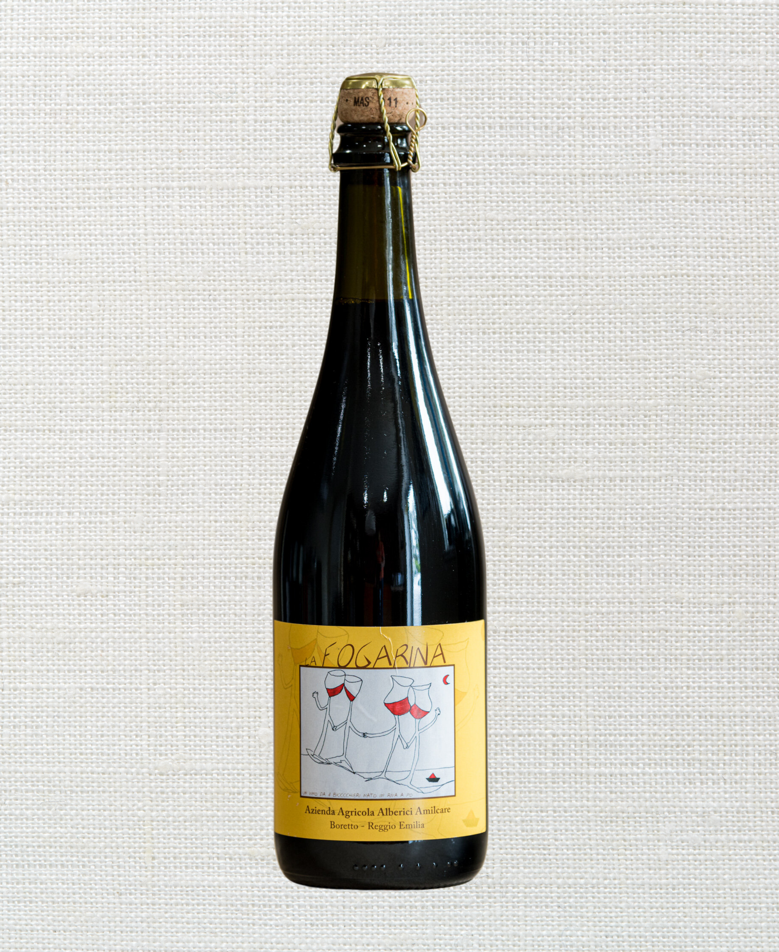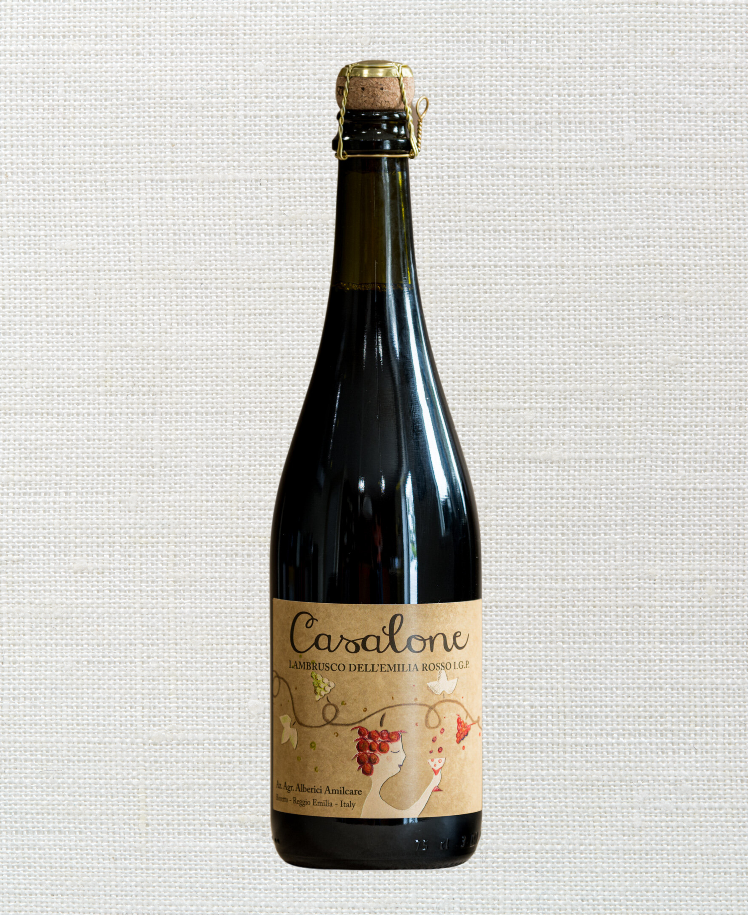 Juxtaposition to purple berry ripeness. Bright with a balanced acidity, this bottle is a breath of fresh air from the candy-sweet Lambrusco of yesteryear. Some years, it is labeled with these amusing, artistic, cheerful glasses; other years, it has the drawing of a fawn done by their beloved uncle, who passed years ago. Either way, it is fab and worthy of singing about.